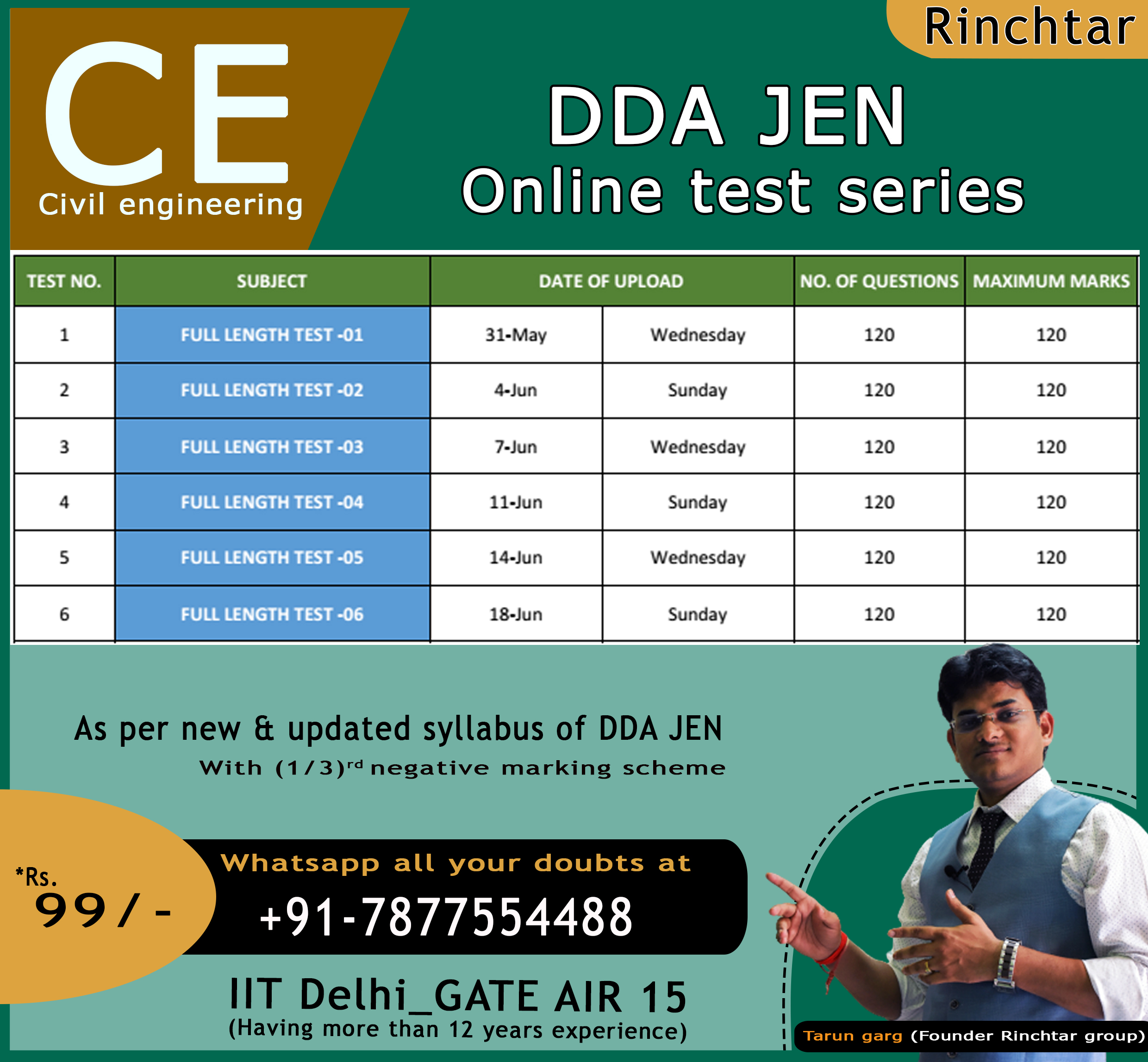 Click on Course preview for full test series plan for DDA JEN (CIVIL ENGINEERING).